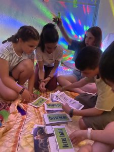 Τα εργαστήρια καλύπτουν ένα μεγάλο εύρος ενδιαφερόντων και επιπέδων. Έτσι λοιπόν το κάθε παιδί, ανάλογα με την ηλικία του και το επίπεδο του στα αγγλικά, μπορεί να επιλέξει να γνωρίσει τα Μυθικά πλάσματα των παραμυθιών, να περάσει μια μέρα στο Λονδίνο,να γίνει ιδιωτικός detective σε μια ιστορία μυστηρίου ή να εξετάσει ευρήματα ως Αρχαιολόγος.
